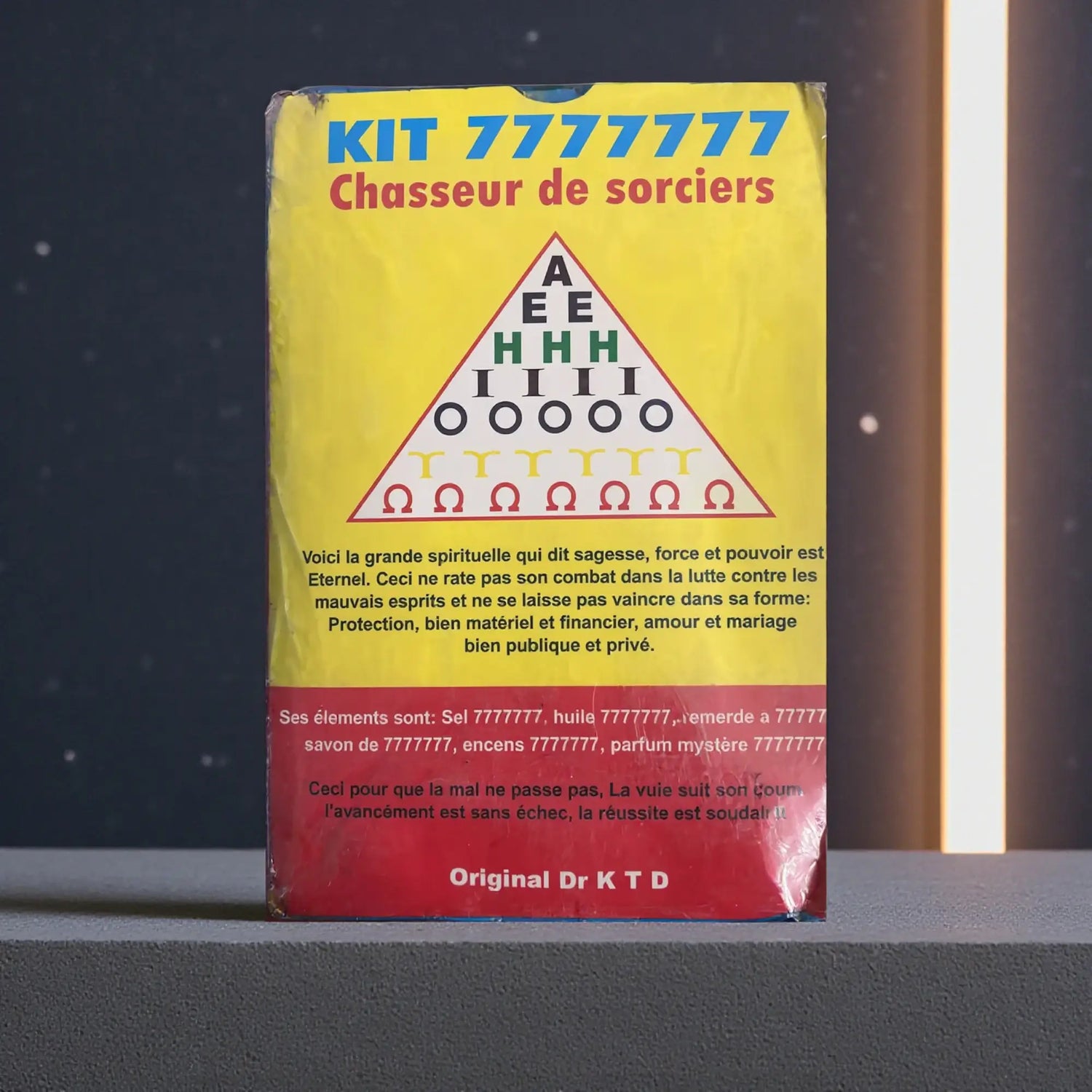 Avec le KIT 7777777, vous disposez d’un véritable rituel de désensorcellement clé en main. Chaque élément du kit vous guide à travers un chemin spirituel structuré, pour poser vos intentions, appeler la protection et couper avec les influences indésirables. Vous ne faites plus les choses au hasard : vous suivez un rituel sacré, clair et profondément symbolique.