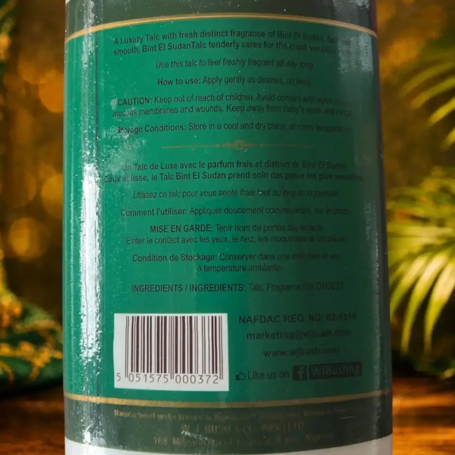 La Bint El Sudan Talcum Powder est une poudre corporelle parfumée traditionnelle, originaire du Soudan, appréciée autant pour son parfum envoûtant que pour sa dimension spirituelle. Fine et douce, cette poudre Bint El Sudan laisse sur la peau un voile délicat au parfum oriental classique et sophistiqué, idéal pour sublimer votre féminité, vous sentir plus confiante et attirer le regard sans en faire trop. Utilisée aprÚs la douche ou le bain, elle aide à garder la peau sÚche, confortable et agréable au toucher, tout en diffusant un sillage chaleureux tout au long de la journée.